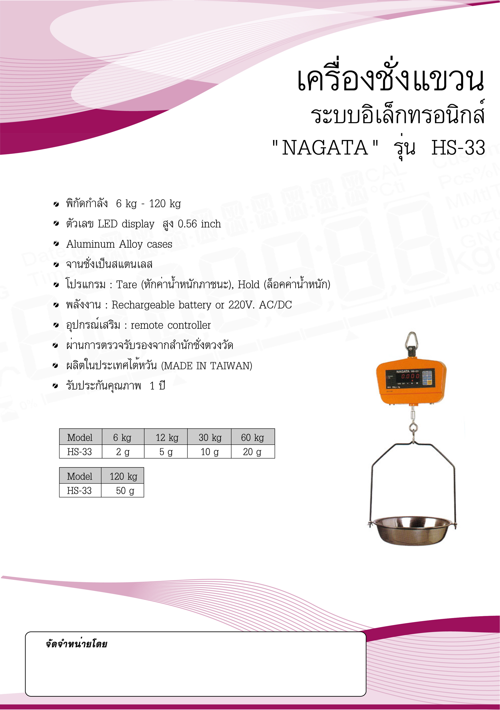 HS-33 เครื่องชั่งแขวน ระบบดิจิตอล NAGATA รุ่น HS-33-6K, HS-33-12K, HS-33-30K, HS-33-60K, HS-33-120K