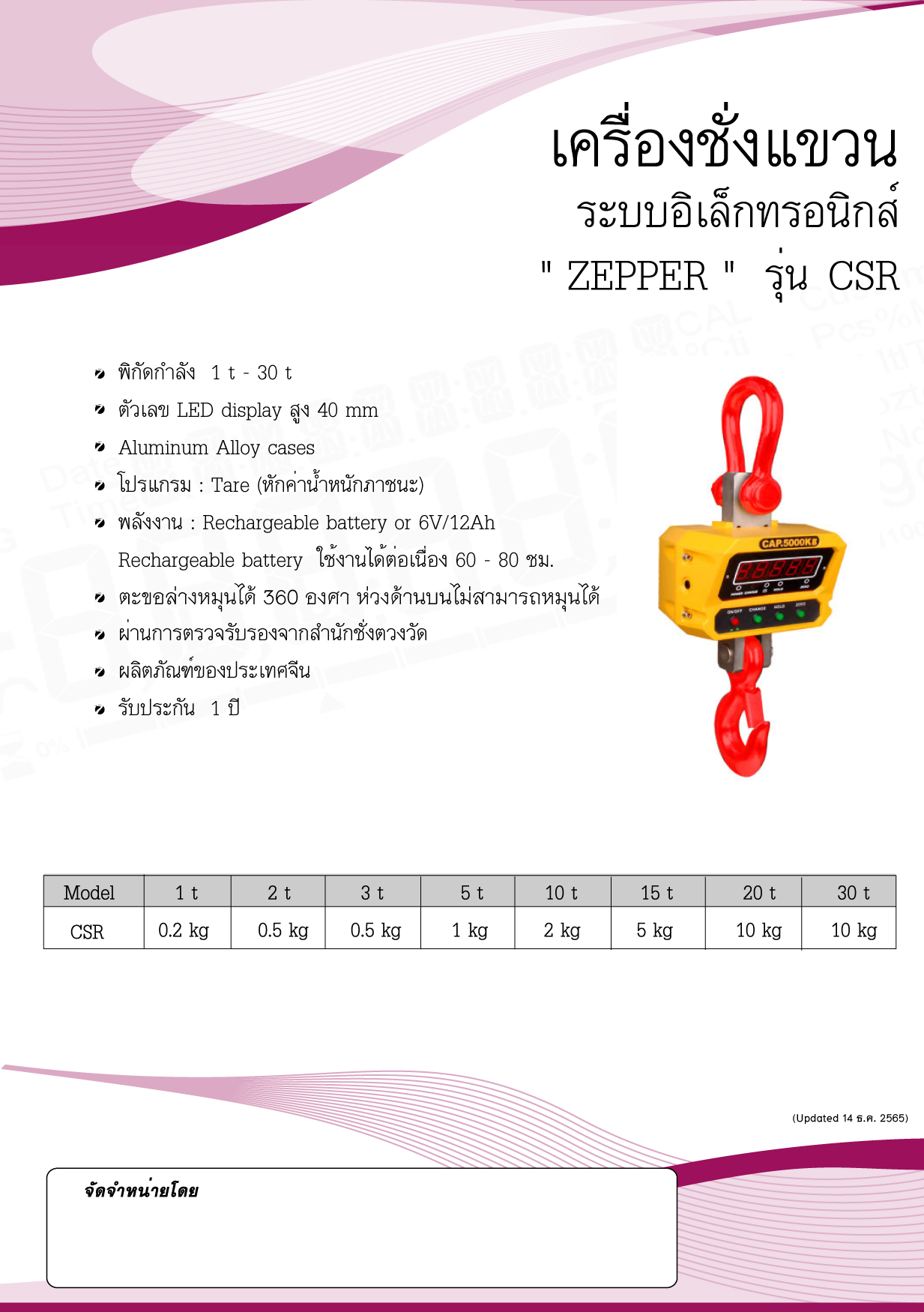 CSR เครื่องชั่งแขวน 1-30ตัน รุ่นประหยัด ยี่ฮ้อ Zepper พิกัด 1T 2T 3T 5T 10T 15T 20T 30T