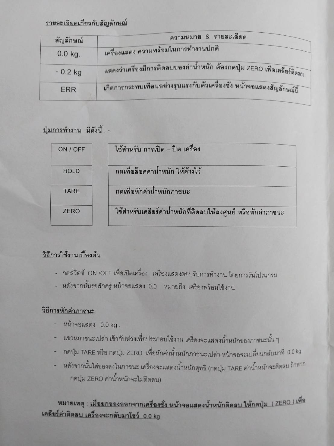 - โปรแกรม : Tare (หักค่าภาชนะ)