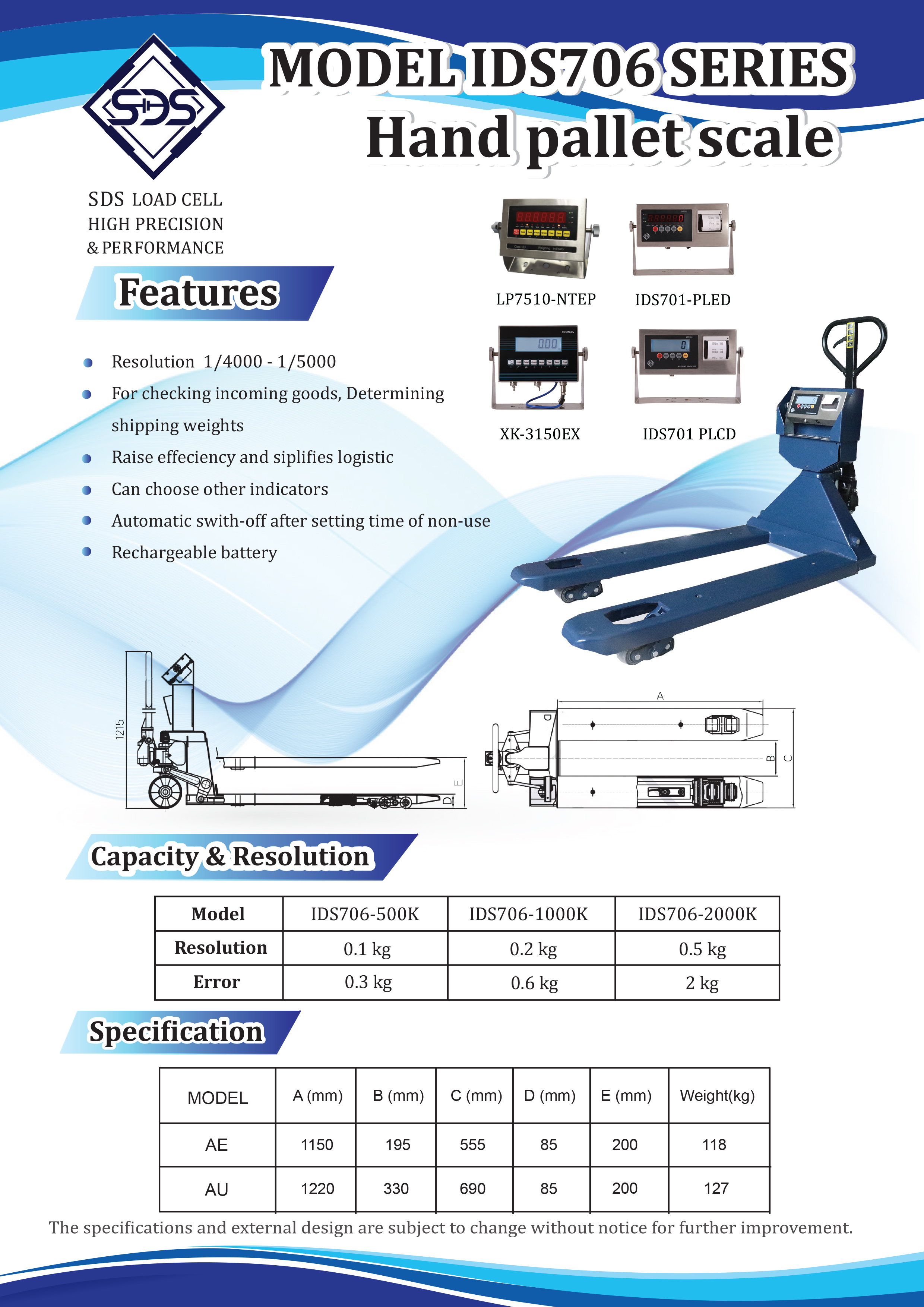 Hand Pallet Scale /เครื่องชั่งยกพาเลท (สามารถเลือกรุ่นหัวอ่านได้อิสระ)