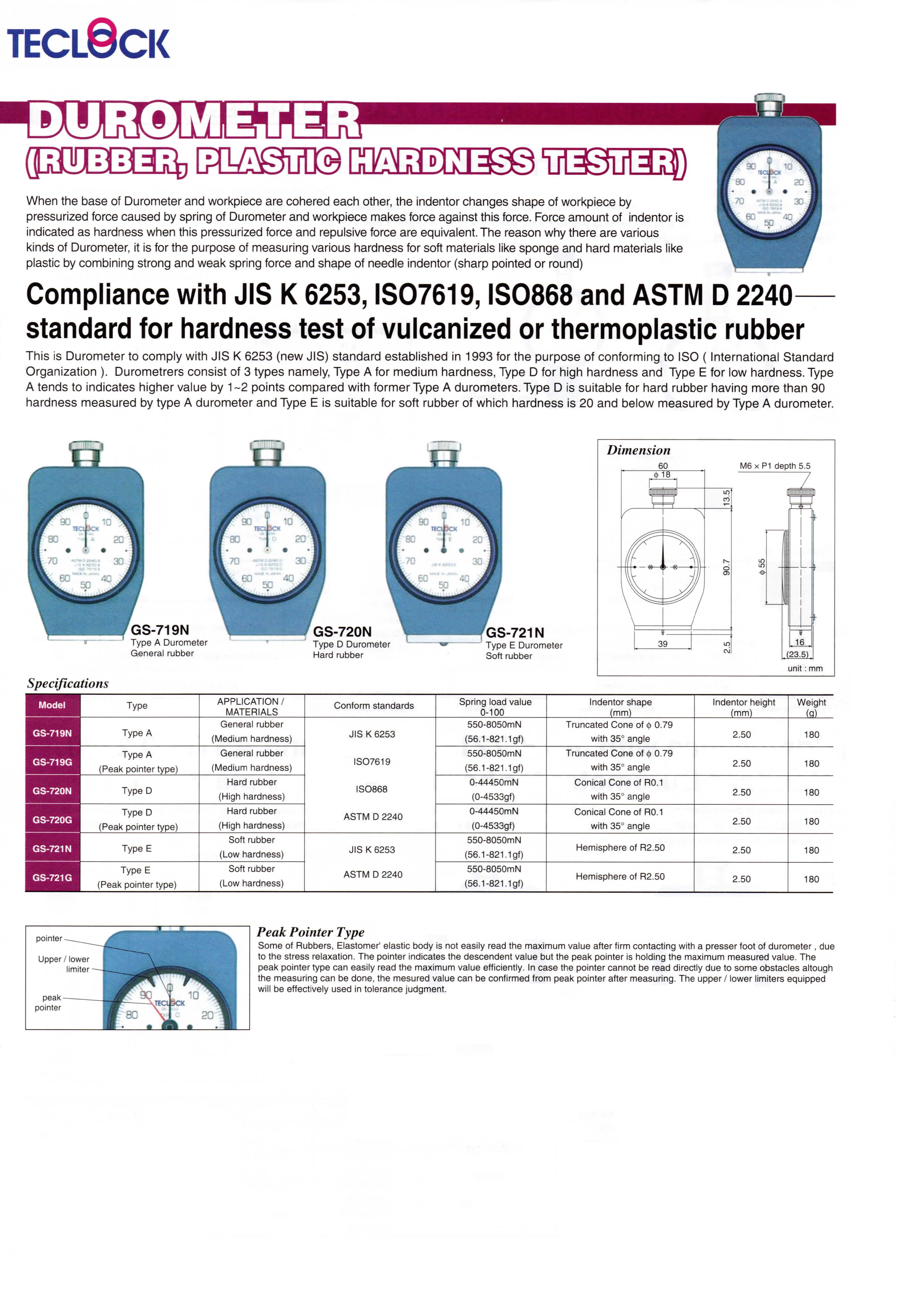 TECLOCK - TYPE A,D,E (JIS 6253,ISO7619,ASTM)