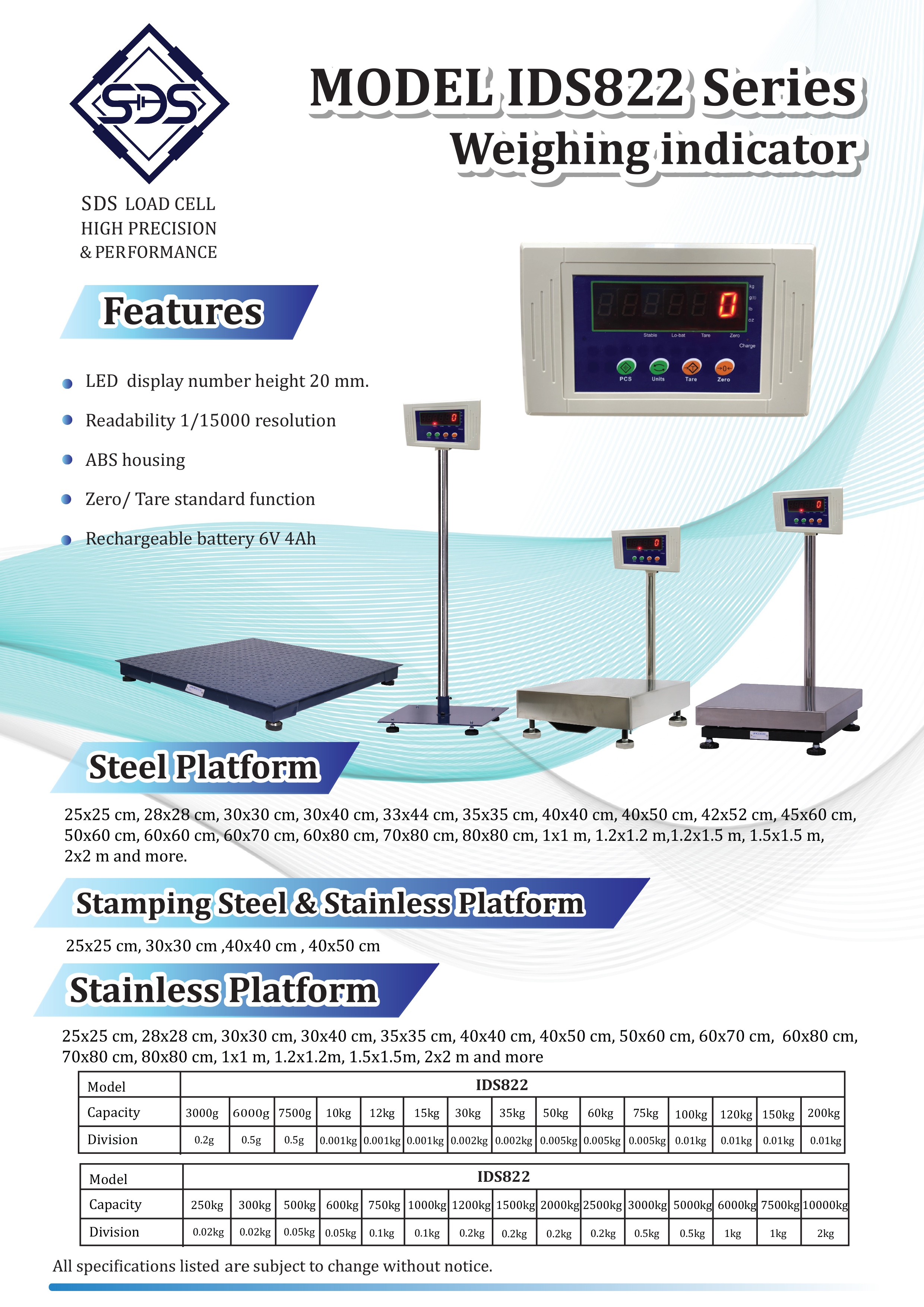 SDS IDS822-Series / เครื่องชั่งดิจิตอลตั้งพื้น